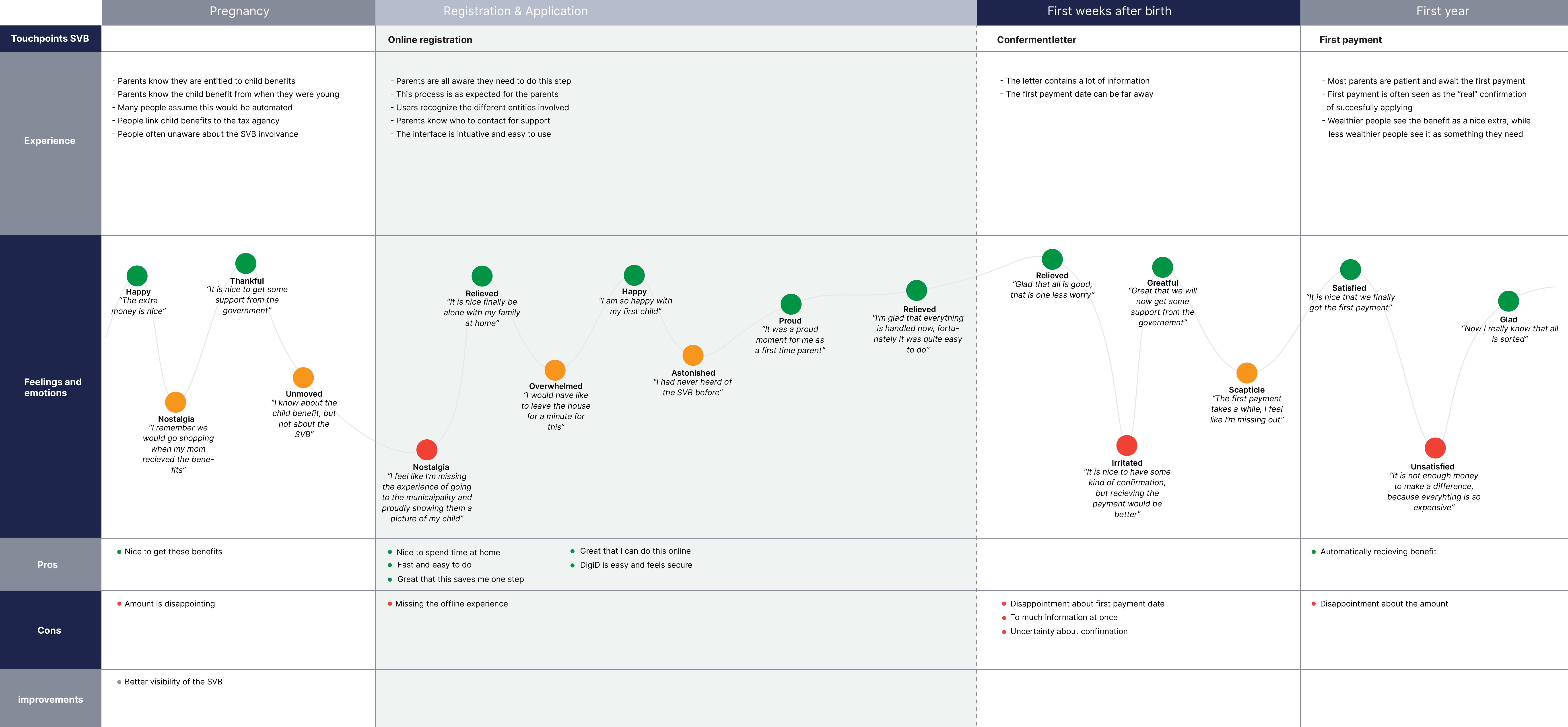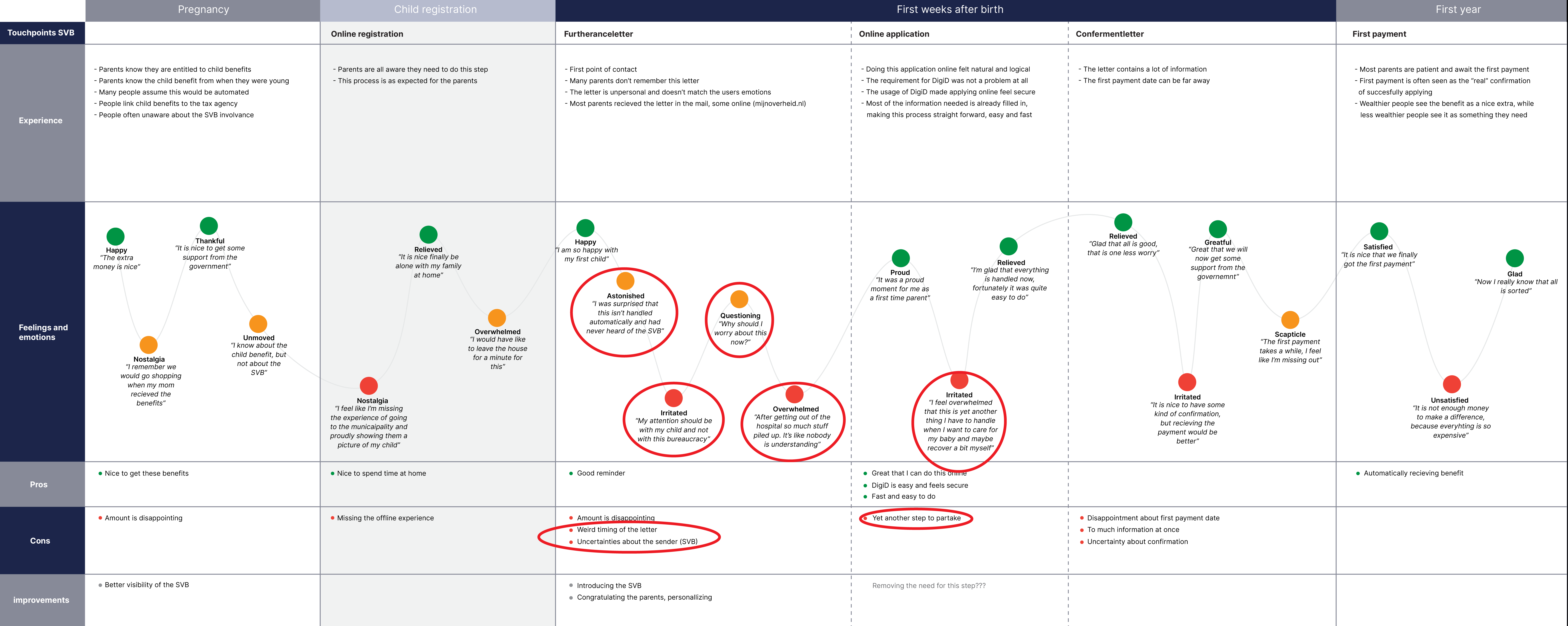 image: Journey of applying for child benefits in the Netherlands with pain points highlighted