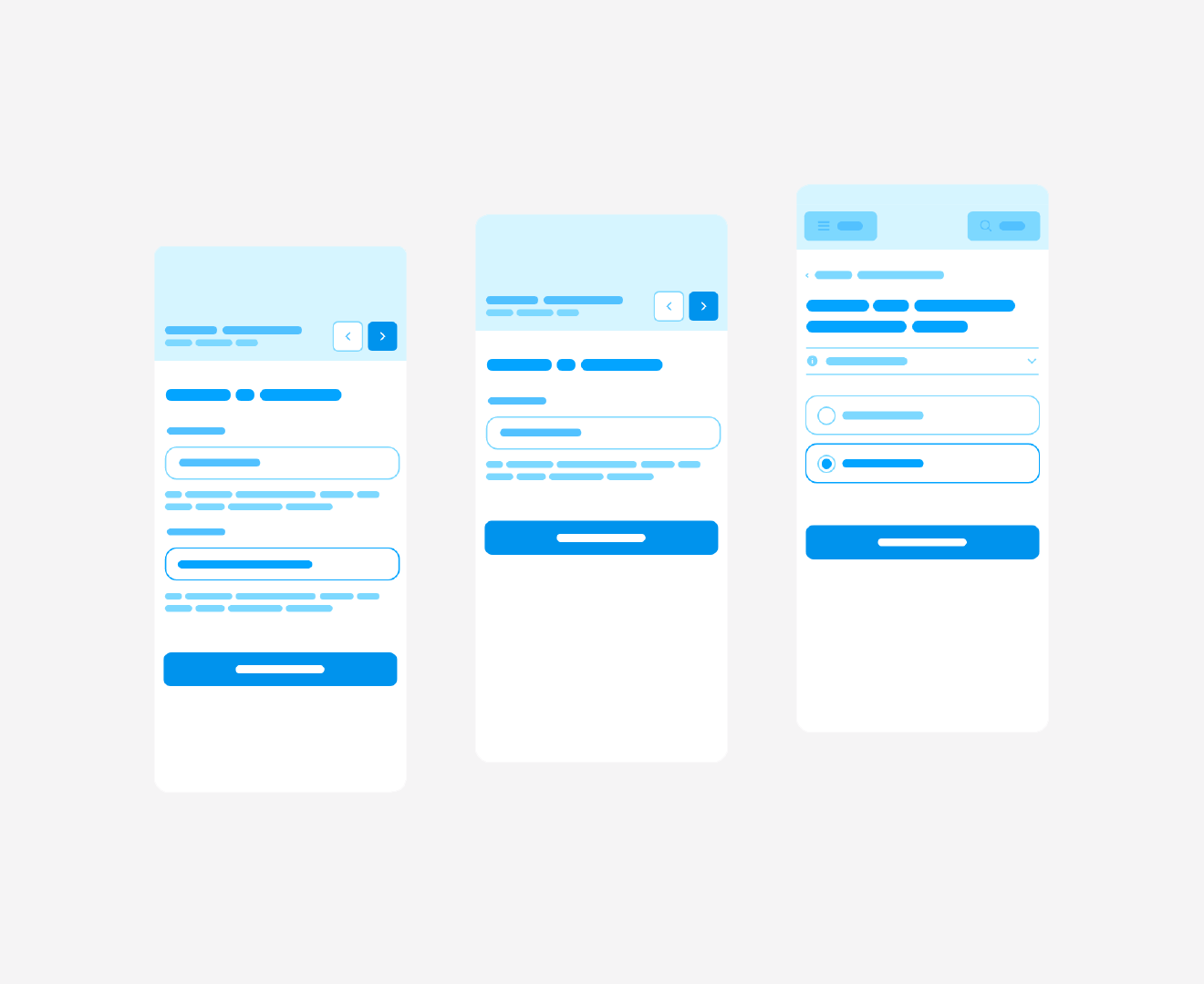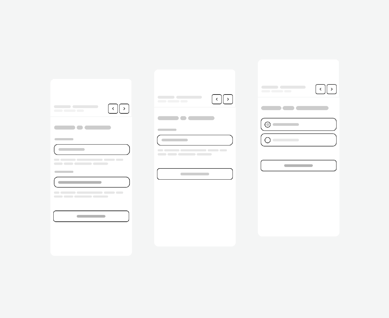 This initial flow of all the individual steps and screens has been thoroughly discussed with experts and stakeholders and based on the feedback the sketches were translated into wireframes. De main change was making a more clear hierarchy in the interface.